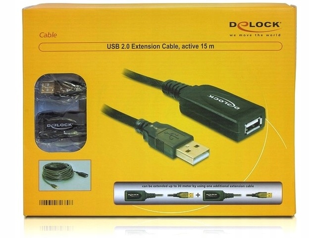 Ten kabel USB Delock można podłączyć do aktywnego portu USB, co umożliwia przedłużenie o 15 m.