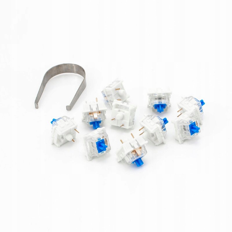 Nadal chcesz, żeby było słychać kliknięcie na niektóre klawisze? W pudełku czekają na Ciebie 4 dodatkowe niebieskie przełączniki. Dołączone jest również narzędzie do wyjmowania przełączników.