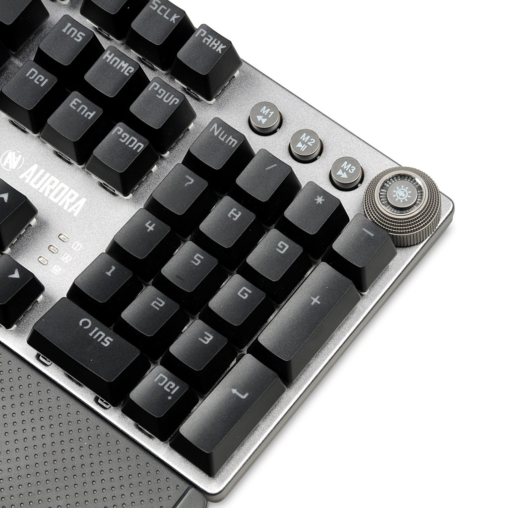 Unikalną cechą Aurora K-3 jest wbudowane pokrętło trybu podświetlenia czy zmiany głośności. Klawisz Fn umożliwia używanie przycisków funkcyjnych do zadań multimedialnych (sterowanie odtwarzaczem, uruchomienie przeglądarki WWW itp.). Oprogramowanie do obsługi klawiatury dostępne jest w języku polskim oraz angielskim. Umożliwia ono rejestrowanie poleceń macro, przypisywanie właściwości do przycisków oraz wybór trybu podświetlenia. Klawiatura posiada 2 tryby anty-ghostiongu: dla 6 klawiszy oraz pełny. To idealny produkt dla każdego gracza. Możliwość zablokowania kombinacji Win+L zapobiegnie przypadkowemu blokowaniu komputera w najmniej odpowiednim momencie w trakcie rozgrywki.
