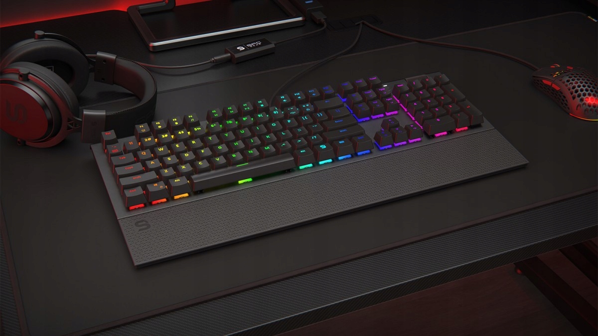 Wygląd klawiatury SPC Gear GK650K Omnis jest połączeniem klasycznego stylu i gamingowego pazura. Jej ostre zarysowane krawędzie i wyprofilowany aluminiowy top wraz z podpórką na nadgarstki z przetłoczeniami świetnie wyglądają zarówno na biurku gracza jak i w środowisku biurowym. To jednak nie wszystko, gdyż klawiatura została wyposażona także w paski LED RGB umiejscowione po bokach, które dodatkowo rozświetlają i wizualnie wzbogacają stanowisko komputerowe.