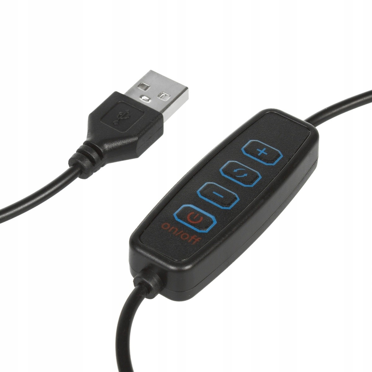 Wysokiej jakości lampa pierścieniowa wyposażona w 160 diod LED zapewnia równomierne oświetlenie podczas wykonywania zdjęć i makijażu. Sprawdzi się również podczas wideokonferencji, nagrywania podcastów i transmisji na żywo. W razie potrzeby można ustawić lampę pod dowolnym kątem. Stabilność lampy zapewnia dołączony do zestawu statyw z regulacją wysokości do 110 cm. Kabel zasilający o długości 200 cm zakończony jest wtykiem USB, dzięki czemu lampę można zasilić bezpośrednio z portu USB komputera, laptopa, jak również z powerbanku lub za pomocą ładowarki telefonu.