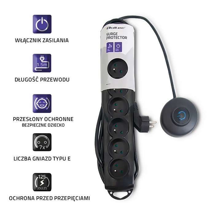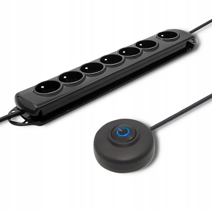 Listwa antyprzepięciowa z wyłącznikiem nożnym | 7 gniazd | 1.5m | Czarna