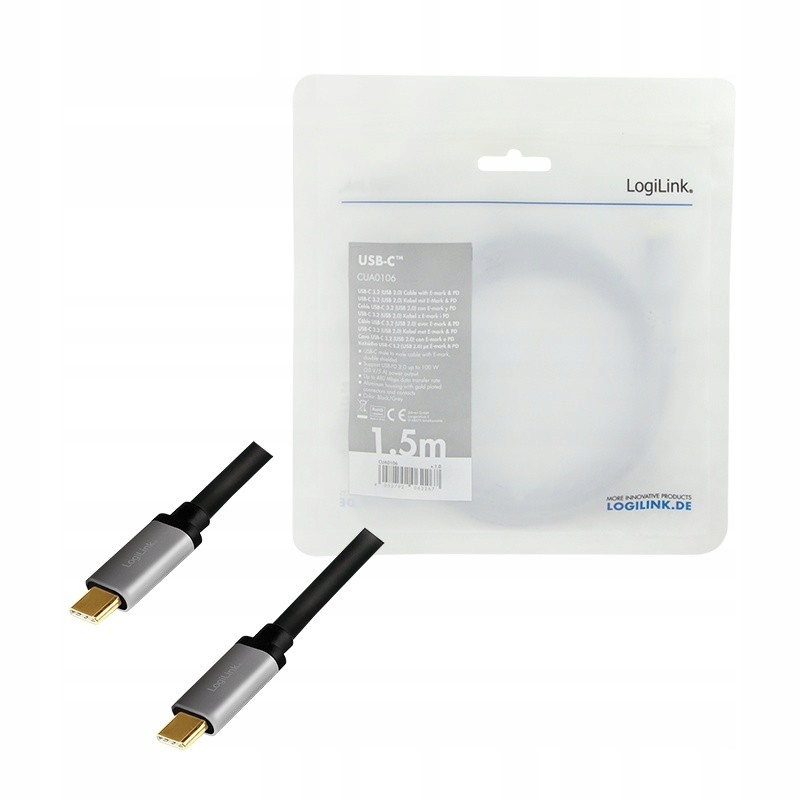 LOGILINK Kabel USB-C M/M, PD, aluminiowy 1.5m