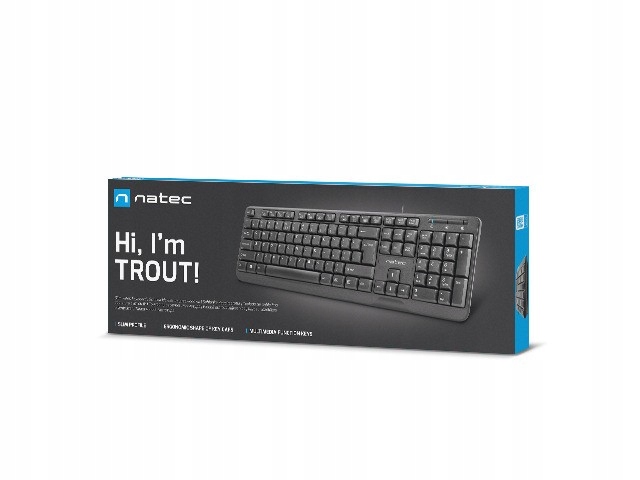 Klawiatura Natec Trout to inteligentne połączenie wytrzymałości i funkcjonalności zamknięte w smukłej obudowie. Rozwiązania takie jak: pokrycie klawiszy warstwą ochronną (PU coating) sprawia, że są one jeszcze bardziej odporne na zalanie, natomiast sama konstrukcja klawiatury jest odporna na zalanie, w przypadku nieprzewidzianych wypadków w biurze czy w domu.