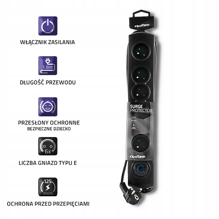 QOLTEC Listwa antyprzepięciowa, 6 gniazd; 1,8m