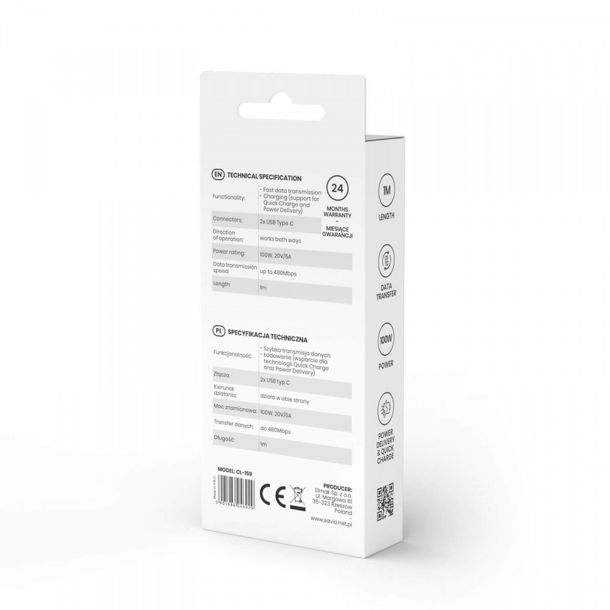 Kabel USB typu C USB typu C 5A 1m SAVIO CL-159