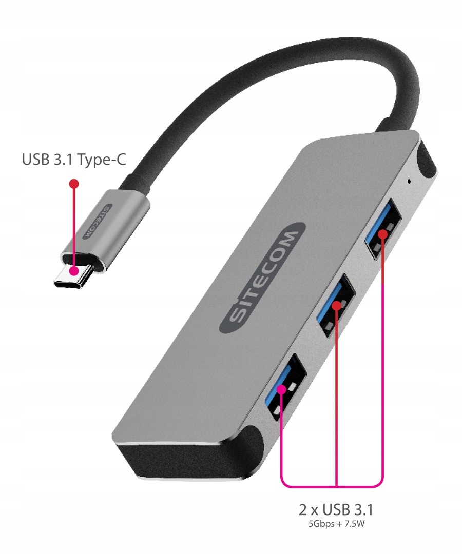 SITECOM Hub USB-C 3 porty USB-A 5Gbps