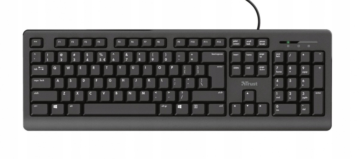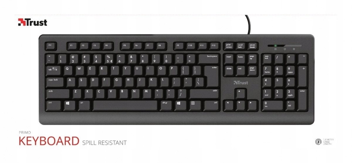 - Przewód o długości 1,8 m pozwala ustawić klawiaturę w dowolnym miejscu na biurku