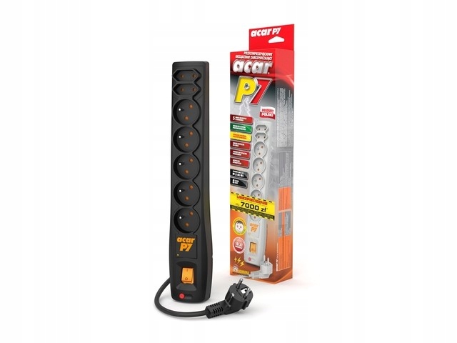 ACAR Listwa zasilająca P7 1.5M czarna - 7 gniazd