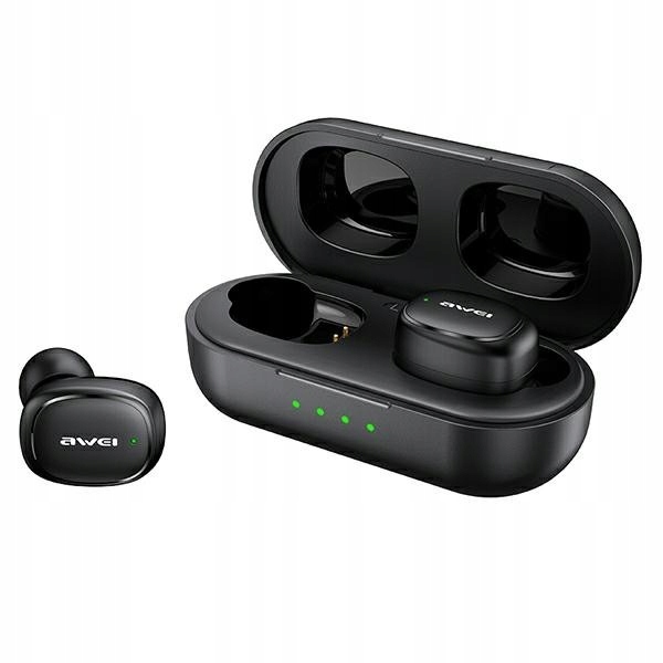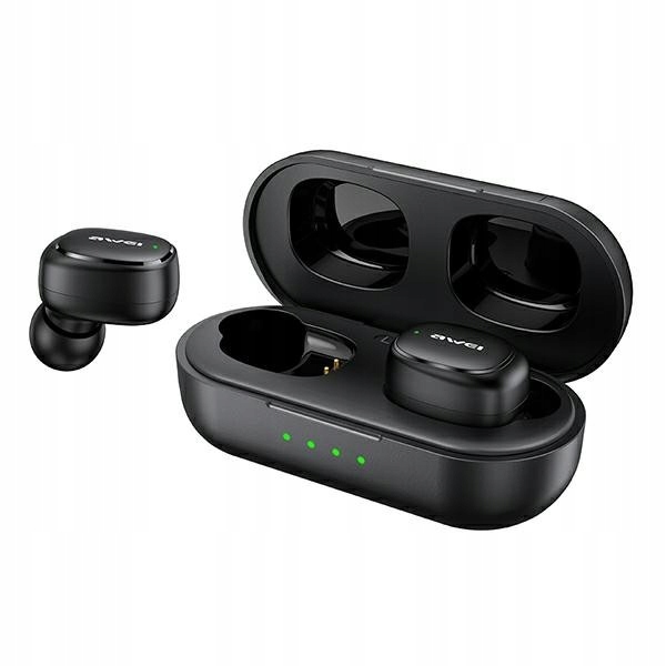AWEI T13 Pro kompaktowe, ergonomiczne, bezprzewodowe słuchawki ze stacją ładowania. Dołączona do zestawu stacja dokująca, będąca power bankiem oraz ładowarką w jednym w prosty sposób rozszerza możliwości tych kompaktowych słuchawek.