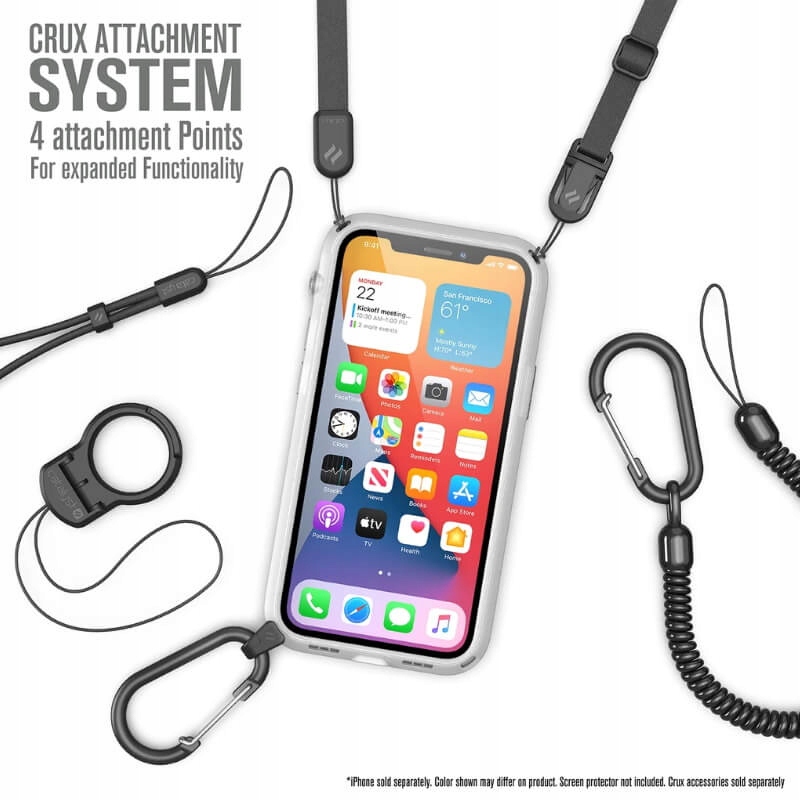 Catalyst Influence to etui do smartfona, które chroni urządzenie i jednocześnie podkreśla autentyczny design i formę. Konstrukcja z „poduszkami powietrznymi” pochłaniającymi wstrząsy i uderzenia sprawia, że urządzenie przetrwa upadki z ponad 3,5 metra. Model Influence gwarantuje bezpieczeństwo na najwyższym poziomie, a na szczególną uwagę zasługują uniesione krawędzie, które chronią ekran i aparat przed zarysowaniem i uszkodzeniem. Produkt wyróżnia się antypoślizgową strukturą oraz precyzyjnymi wycięciami w miejscach głośników. Warto wspomnieć, że 4-punktowy system mocowania Crux umożliwia zawieszenie telefonu na smyczy w dowolny sposób.