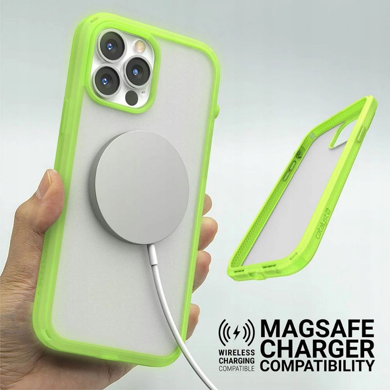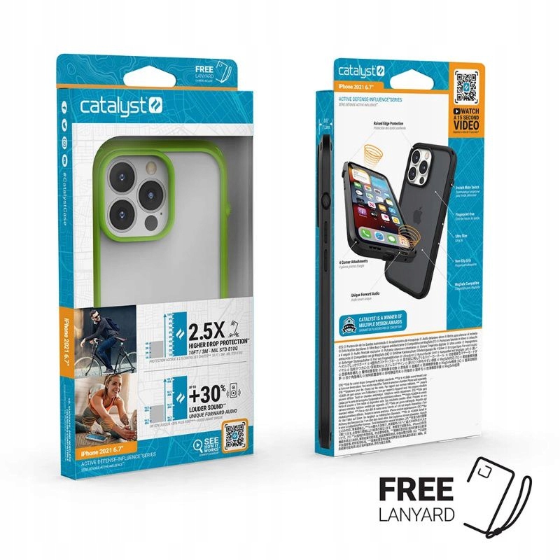 Etui Catalyst Influence to też zgodność z ładowaniem bezprzewodowym QI oraz MagSafe. Model Influence został zaprojektowany tak, by zapewnić wygodny dostęp do wszystkich portów w urządzeniu. Akcesorium przeznaczone jest do modelu Apple iPhone 13 Pro Max, a powłoka świeci w ciemności. W zestawie z etui znajduje się smycz na nadgarstek.