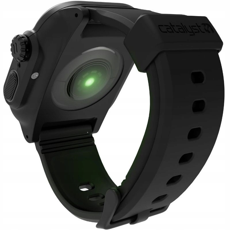 Catalyst Waterproof to etui, które zapewnia ochronę smartwatcha. Wodoodporna konstrukcja na poziomie IP68 gwarantuje odporność na śnieg, brud oraz piasek. Case spełnia standardy wojskowe dotyczące wstrząsów i upadków do 2 metrów oraz może pochwalić się systemem amortyzacji przy uderzeniach. Potwierdza to militarny certyfikat MIL-STD 810G. Model Waterproof nie ogranicza funkcjonalności smartwatcha, dzięki czemu Bluetooth, pulsometr, głośnik, mikrofon, pokrętło zegarka i przycisk boczny pozostają w pełni dostępne. Produkt wyróżnia się oddychającą i hipoalergiczną opaską sportową. Warto wspomnieć, że wysunięta ramka etui chroni wyświetlacz zegarka.