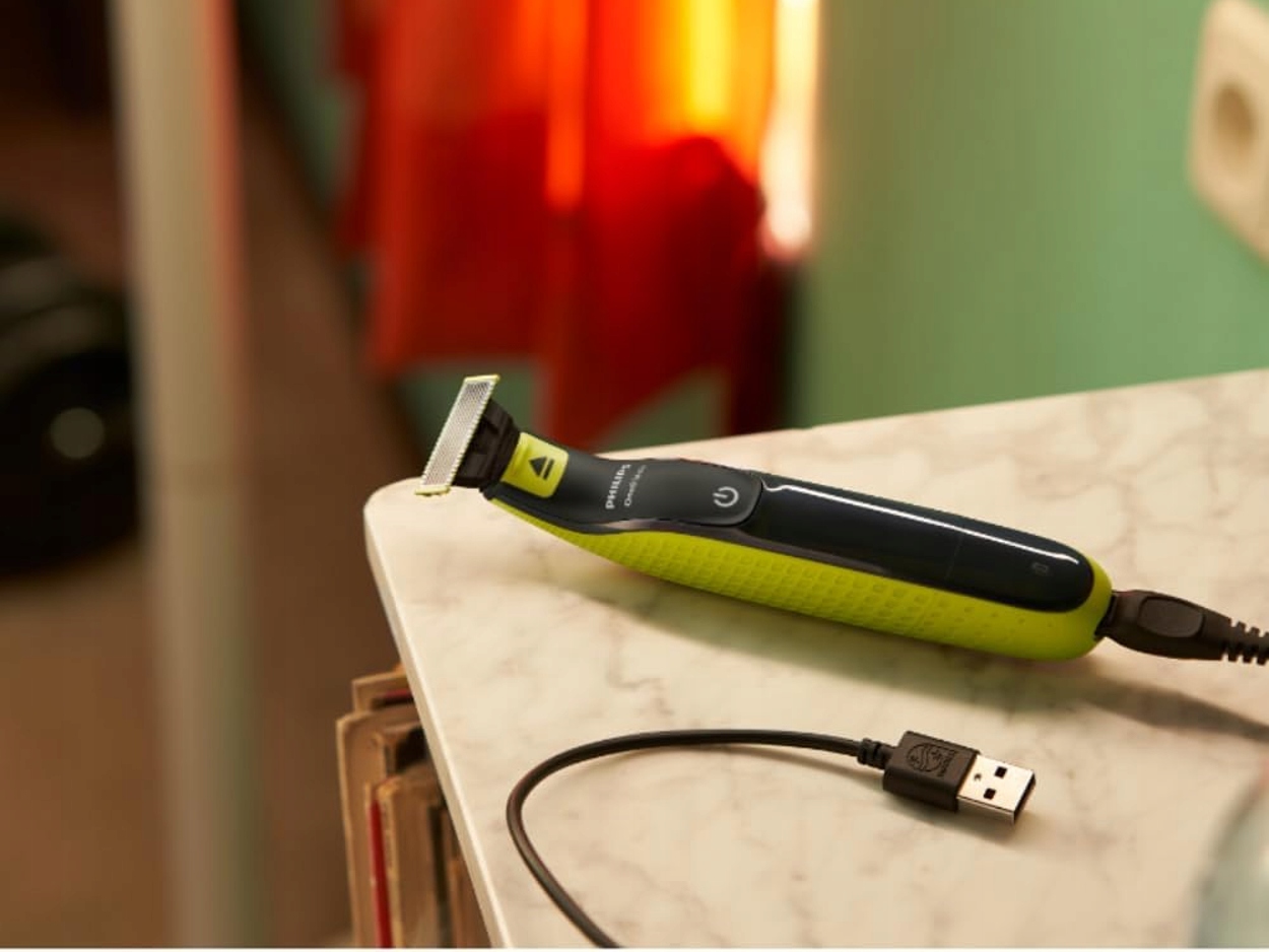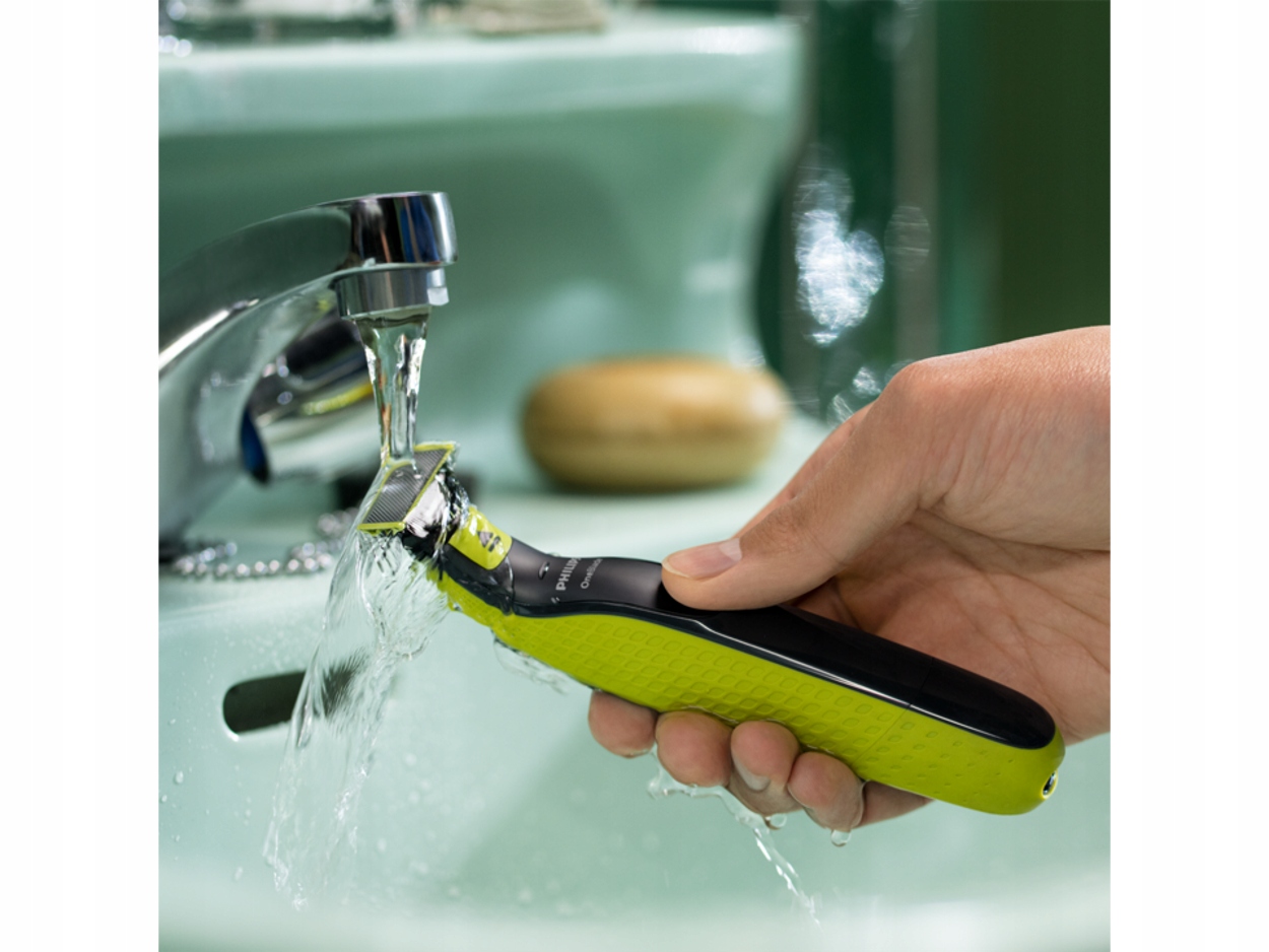 • Technologia OneBlade 360° – elastyczne ostrze dopasowuje się do konturów twarzy, zapewniając precyzyjne przycinanie i gładkie golenie nawet w trudno dostępnych miejscach