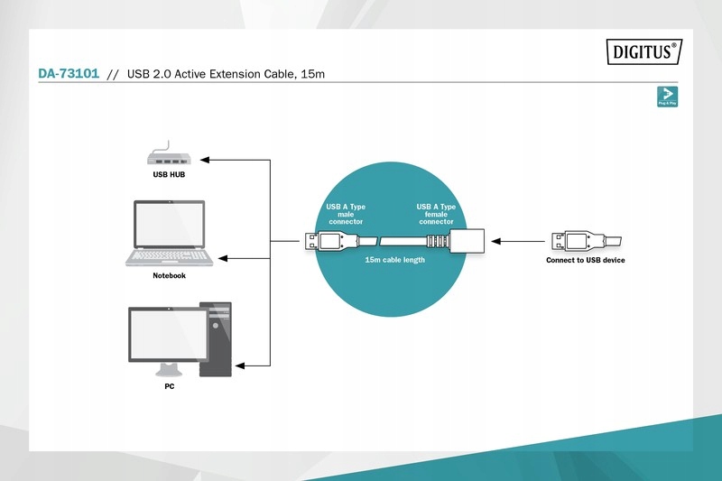 Kabel przedłużający USB 2.0 o dodatkowe 15m to rozwiązanie pozwalające na korzystanie z urządzeń peryferyjnych USB z dala od komputera.