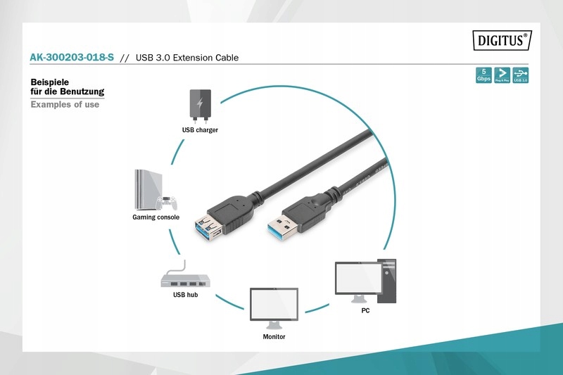 Kabel przedłużający USB 3.1 Gen.1 SuperSpeed