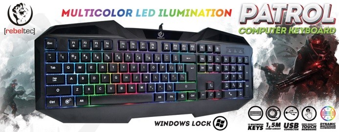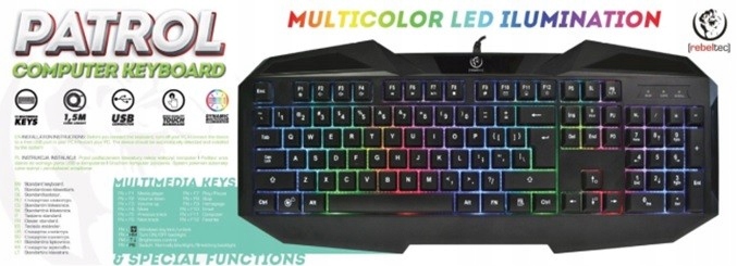 Pełnowymiarowa podświetlana klawiatura USB dla graczy Rebeltec Patrol