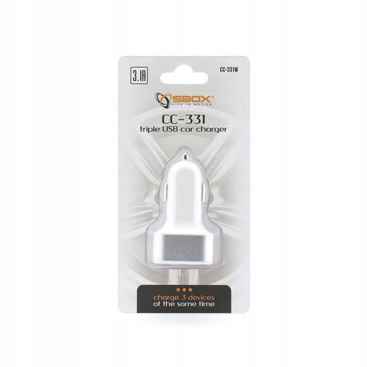 ŁADOWARKA SAMOCHODOWA USB SBOX CC-331/3xUSB - 3.1A Biała