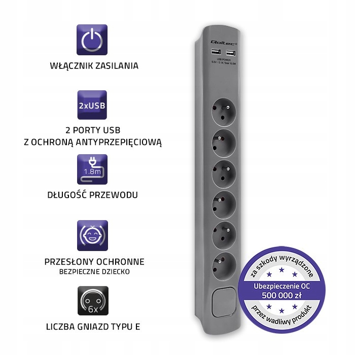 Chcąc zapewnić ochronę Tobie i innym użytkownikom urządzeń podłączonych do listwy wyposażyliśmy ją w szereg zabezpieczeń: