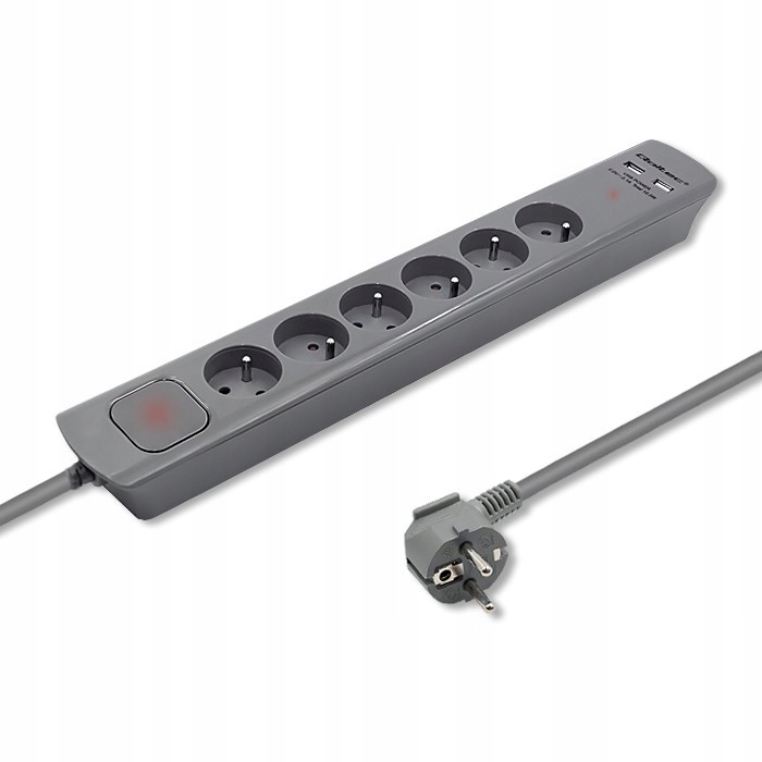 Listwa antyprzepięciowa | 6 gniazd | 2xUSB | 1.8m | Szara