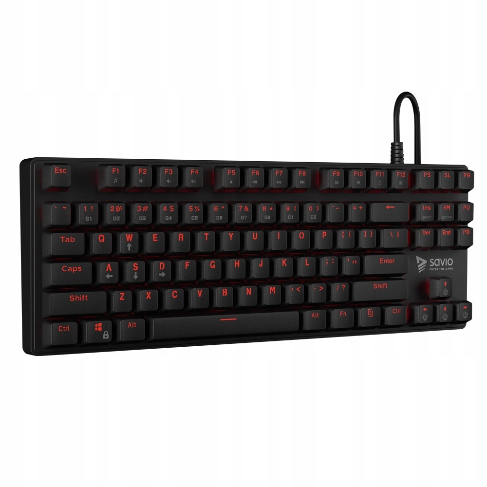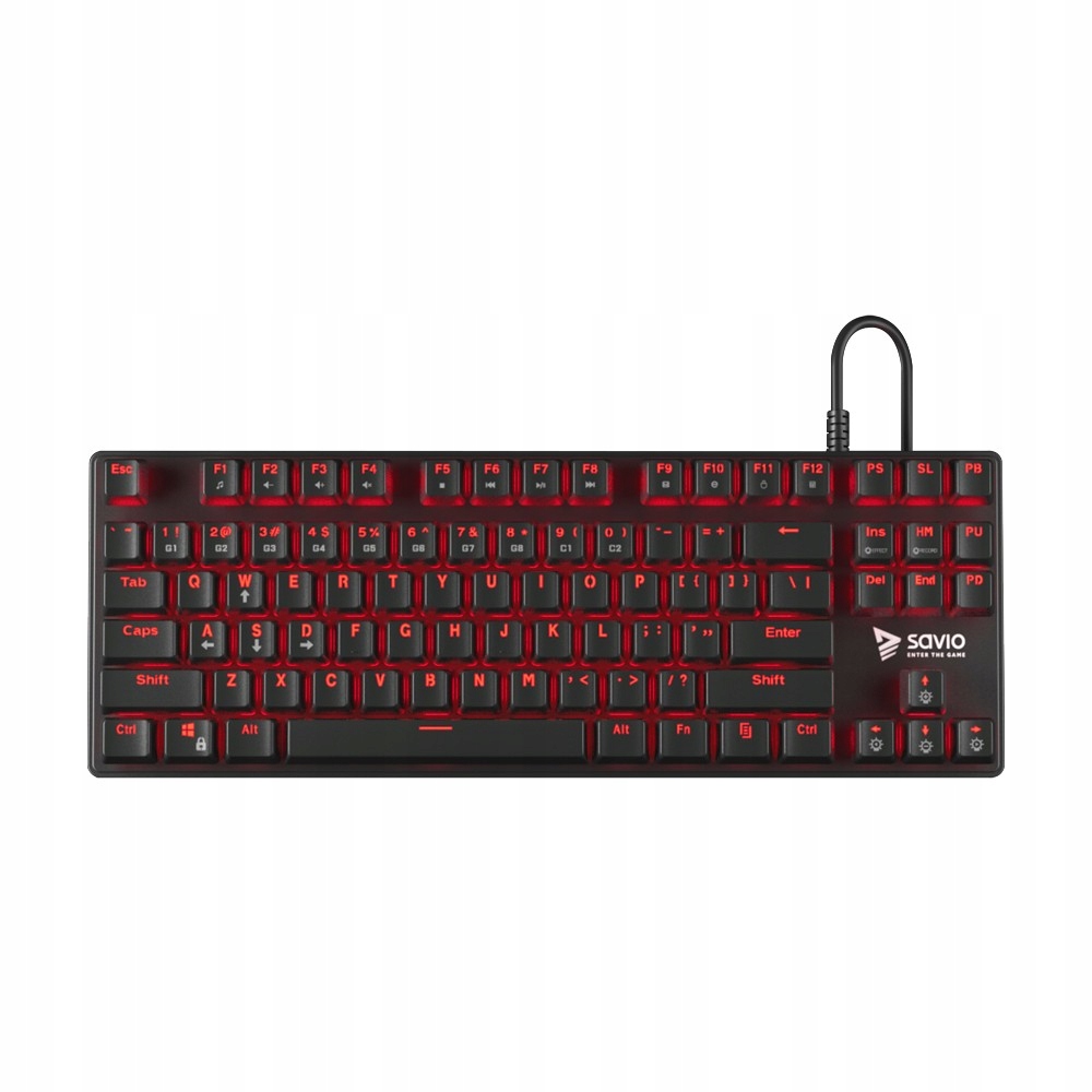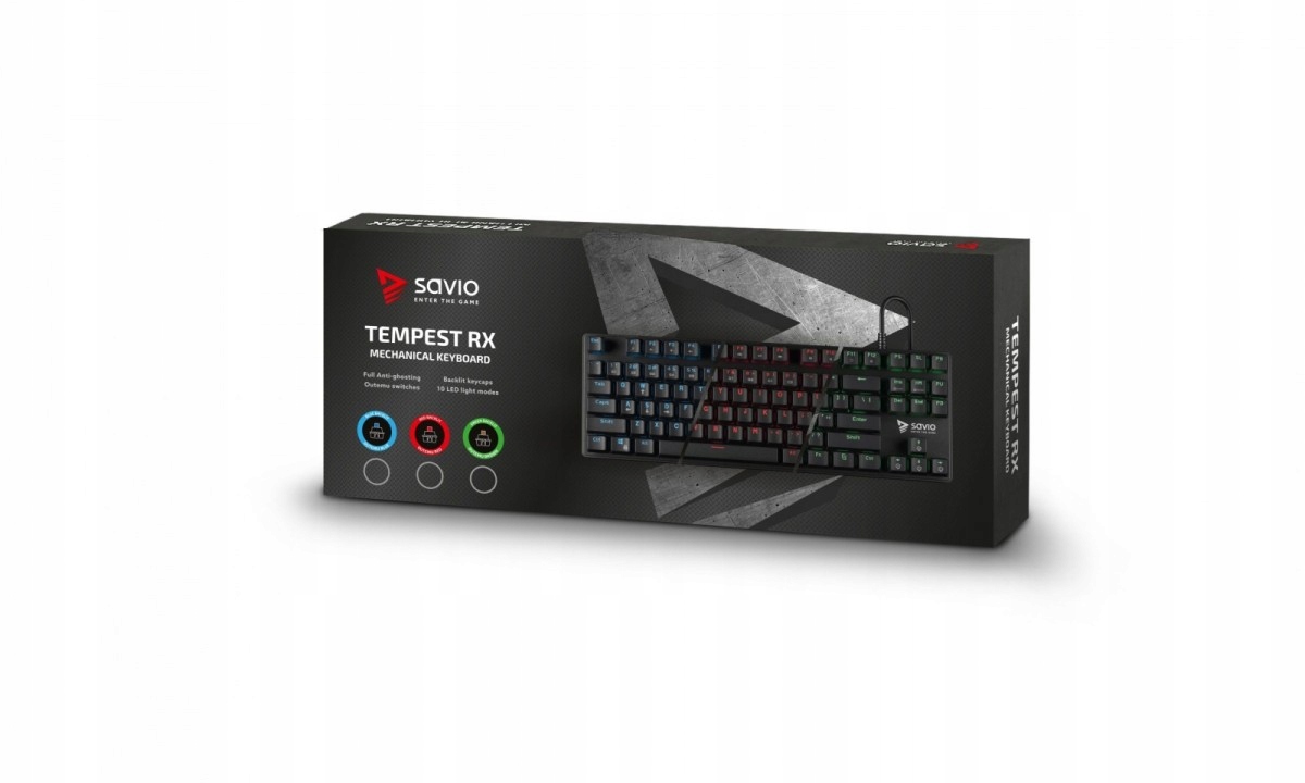 Klawiatura Gamingowa SAVIO Tempest RX to funkcjonalna klawiatura przeznaczona dla profesjonalnych graczy, szukających wysokiej jakości sprzętu, na którym będą mogli polegać w trakcie wielogodzinnych sesji w świecie gier komputerowych. Klawiatura mechaniczna to większa szybkość i precyzja wykonywanych akcji. Tempest RX to klawiatura typu TKL (tenkeyless), czyli klawiatura turniejowa, bez bloku klasycznego numerycznego. Przełączniki klawiszy Outemu RED zaprojektowano specjalnie, aby osiągnąć równowagę pomiędzy szybkością reakcji i dokładnością.