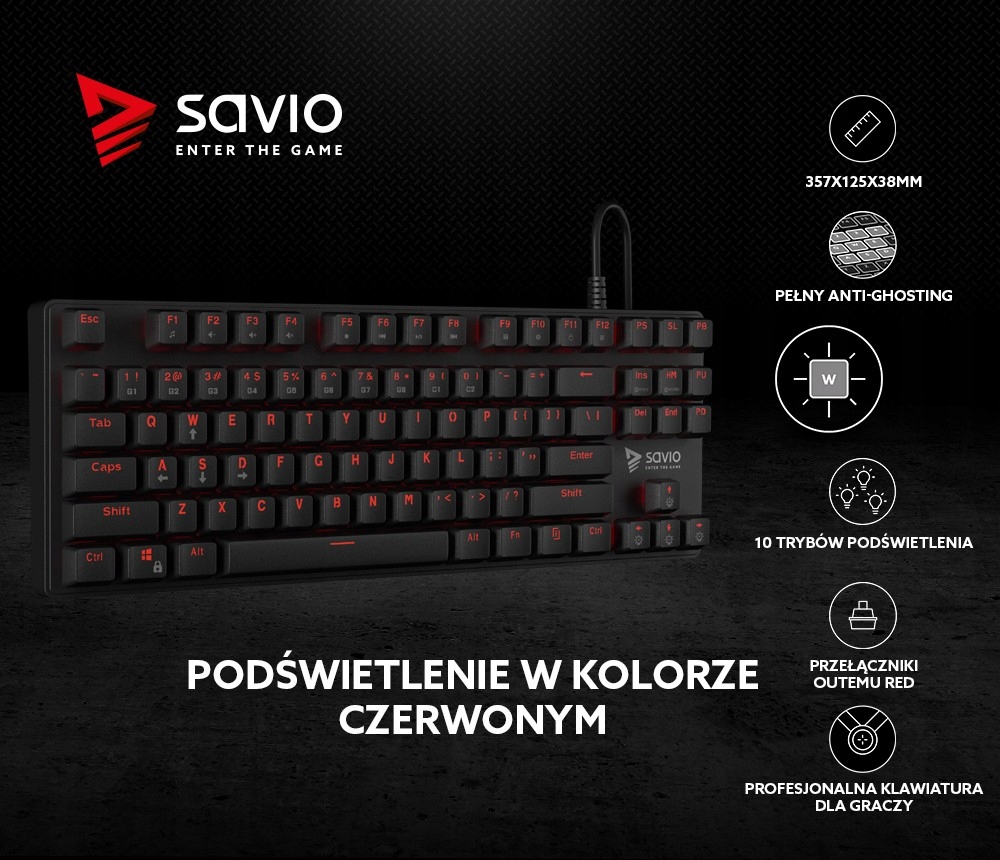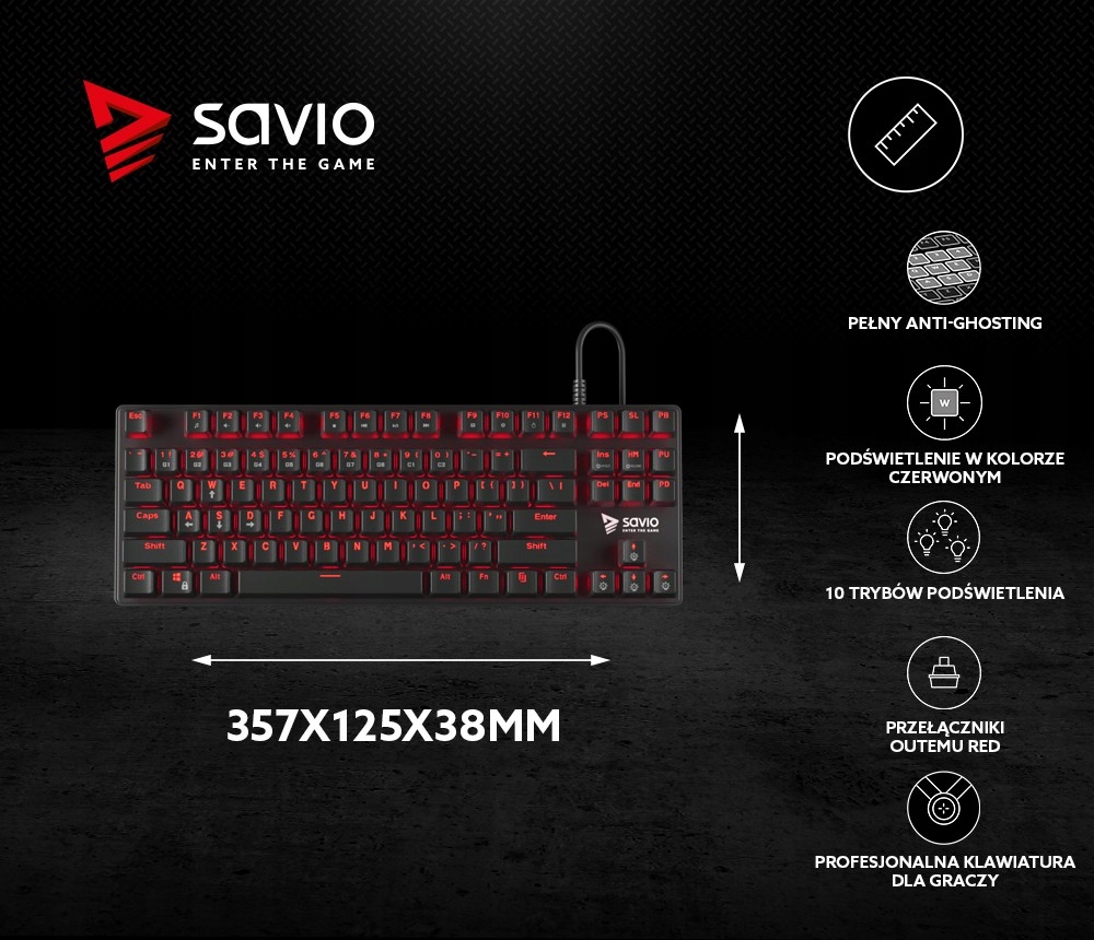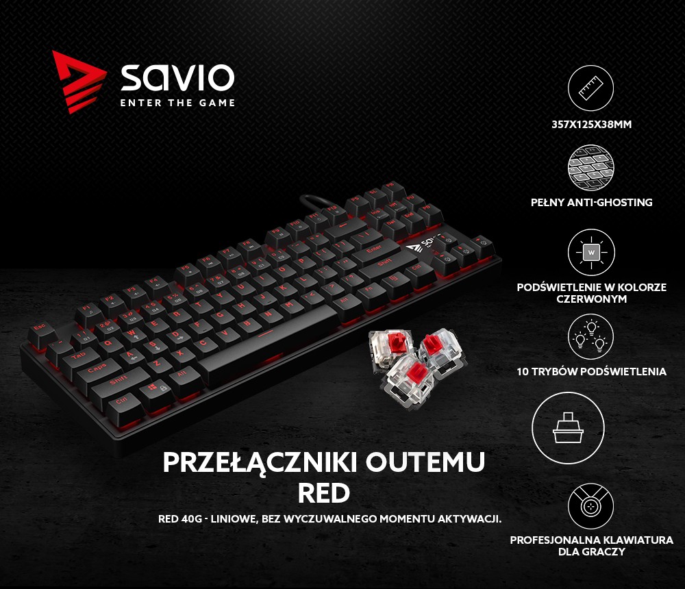 Klawiatura Gamingowa SAVIO Tempest RX RED