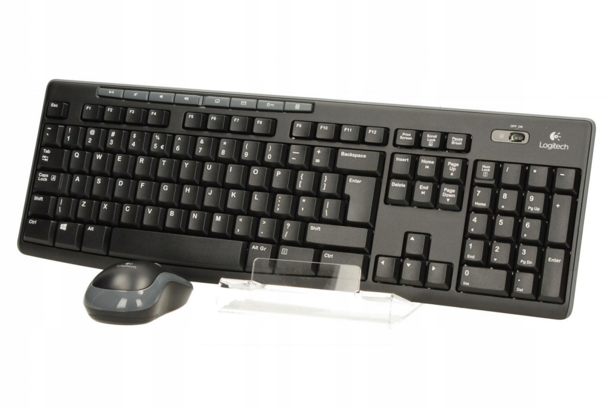 - Akcesoria w zestawie: - Klawiatura- Mysz- Nanoodbiornik- 2 baterie AAA do klawiatury i 1 baterie AA do myszy- Dokumentacja