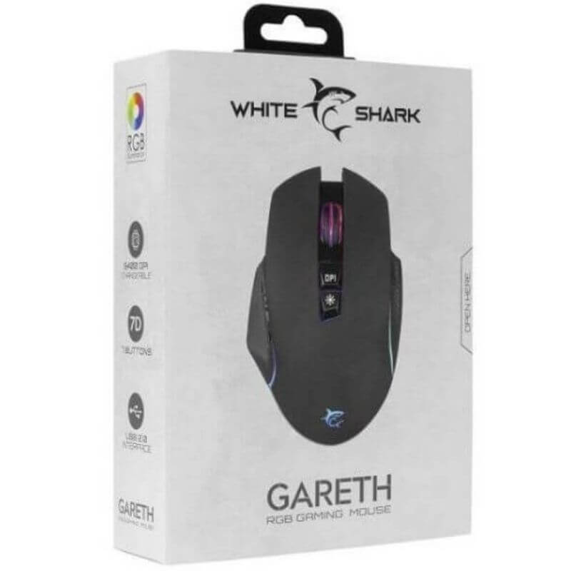 WhiteShark Gareth to mysz do gier o konstrukcji 7D, wyposażona w 7 przycisków oraz przełączniki HUANO o żywotności 10 milionów kliknięć. WhiteShark GARETH to przeznaczona dla graczy mysz z sensorem Chipset SUNPLUS 6651, który został zoptymalizowany pod kątem gry. Mysz charakteryzuje przyspieszenie 12 G oraz polling rate na poziomie 1000 Hz. Rozdzielczość myszy można regulować w zakresie od 1000 do 6400 DPI, aby dopasować poziom precyzji do swoich potrzeb.