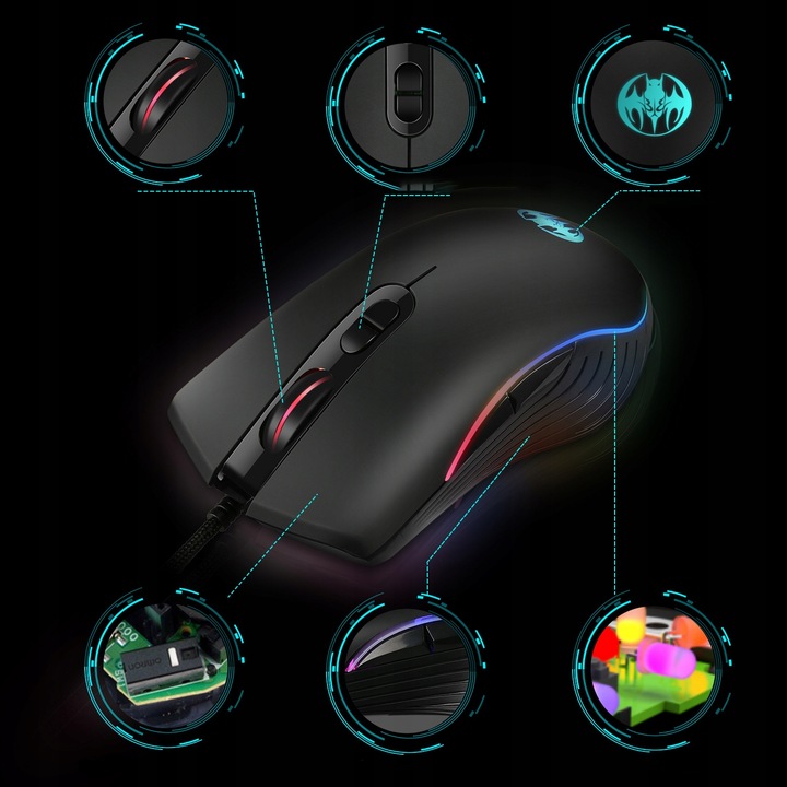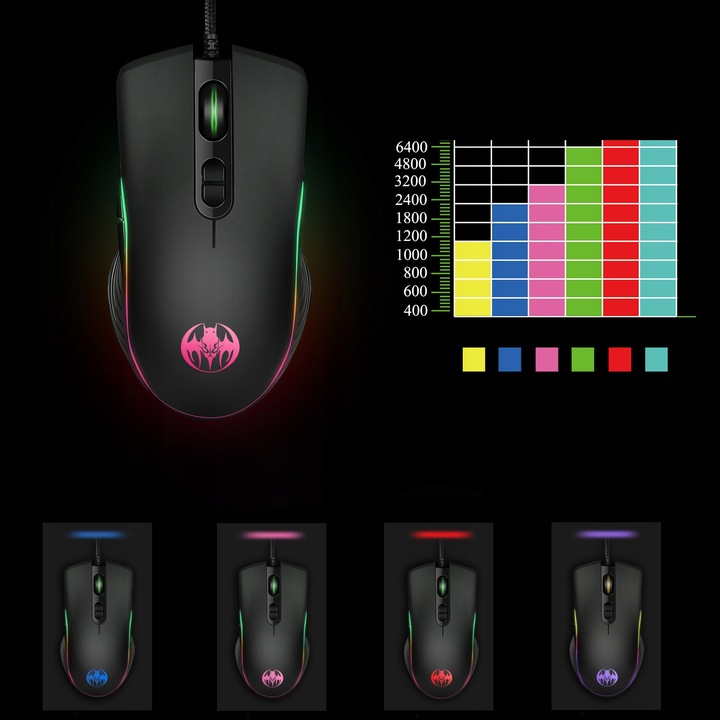MYSZKA PRZEWODOWA MYSZ OPTYCZNA RGB LED Z SENSOREM OPTYCZNYM 6400 dpi