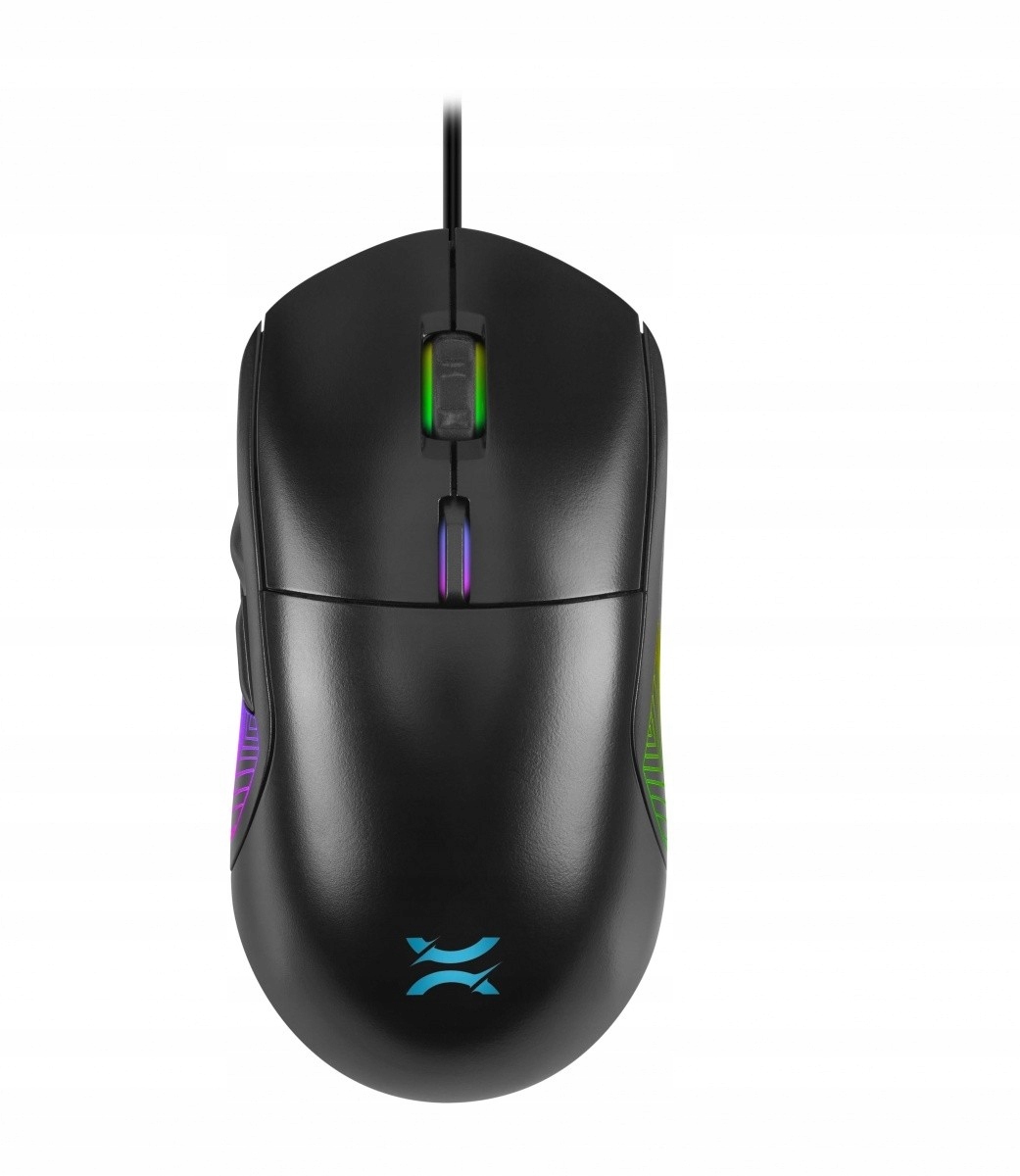 Ergonomiczna mysz dla graczy z sensorem o zmiennej czułości, wielobarwnym podświetleniem i 6 przyciskami.
