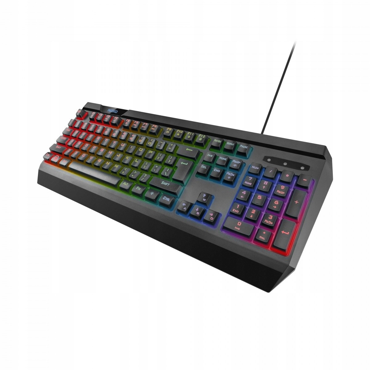 Pełnowymiarowa, membranowa klawiatura dla graczy z tęczowym podświetleniem Rainbow oraz antyghostingiem na głównych klawiszach.