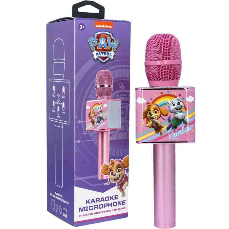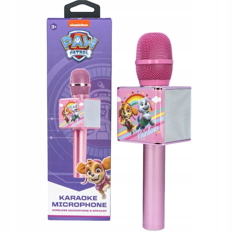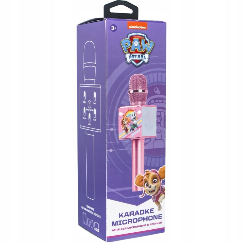 Mikrofon do karaoke dla dzieci PAW Patrol może pełnić aż 4 funkcje: mikrofonu, głośnika bluetooth, dyktafonu oraz megafonu. Specjalny panel funkcyjny umożliwia zmianę ustawień, dzięki czemu zabawa staje się ciekawsza. Mikrofon w prosty sposób można połączyć ze wszystkimi urządzeniami z systemem iOS oraz Android, jest kompatybilny z tabletami, telewizorami itp. Jasny i przyjemny kolor oraz znane postaci sprawiają, że urządzenie jest atrakcyjne wizualne.