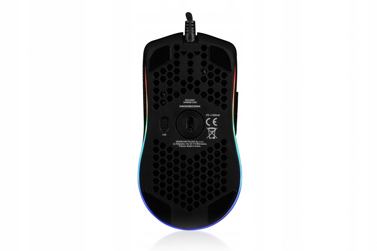 Modecom Volcano Shinobi to nowa seria myszek optycznych. Uniwersalny kształt oraz zredukowana waga czynią z serii SHINOBI naturalnym wyborem dla osób wymagających lekkości oraz precyzji. Plaster miodu dedykowany typ obudowy dla serii SHINOBI - lekki i wytrzymały materiał dzięki dodatkowej wentylacji pozwala na dłuższe sesje bez objaw zmęczenia. Fani niskich dpi też docenią piórkową, 72 gramową wagę myszy.