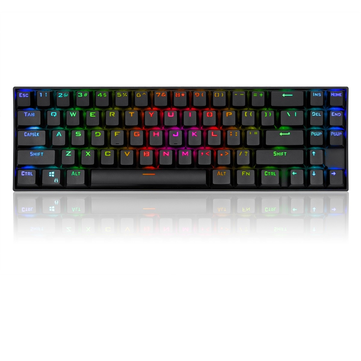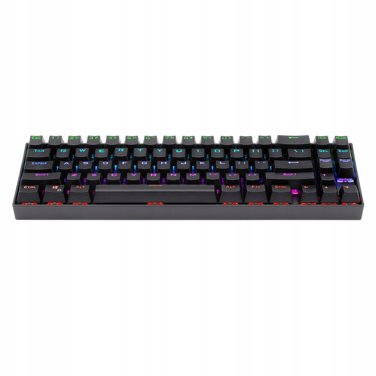 Redragon Deimos to klawiatura mechaniczna z podświetleniem RGB dla graczy ceniących przede wszystkim mobilność. Wyróżniający ją pomniejszony o blok numeryczny układ klawiszy (TKL) osadzonych na niebieskich przełącznikach czyni sprzęt niesamowicie kompaktowym, umożliwiając przenoszenie go w niemalże dowolnym plecaku lub torbie. Klawiatura posiada tryby pracy zarówno przewodowej (USB) jak i bezprzewodowej (w paśmie 2.4GHz, połączenie przy użyciu dołączonego odbiornika USB). Mało tego, nie musisz się też obawiać złego współdziałania klawiszy pełny Anti-Ghosting poradzi sobie nawet z wciśnięciem wszystkich jednocześnie. Wygoda na pierwszym miejscu!