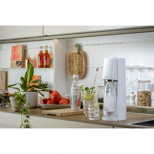 Saturator do wody SodaStream Terra w kolorze białego matu, idealnie pasuje do każdego wnętrza, zarówno Twojej kuchni jak i pomieszczenia biurowego.