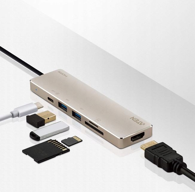 - Wielofunkcyjna stacja dokująca 6 w 1, która zawiera 1x HDMI, 1x czytnik kart SD / Micro SD, 1x port USB-C PD i 2x porty USB 3.2 Gen 1 typ A