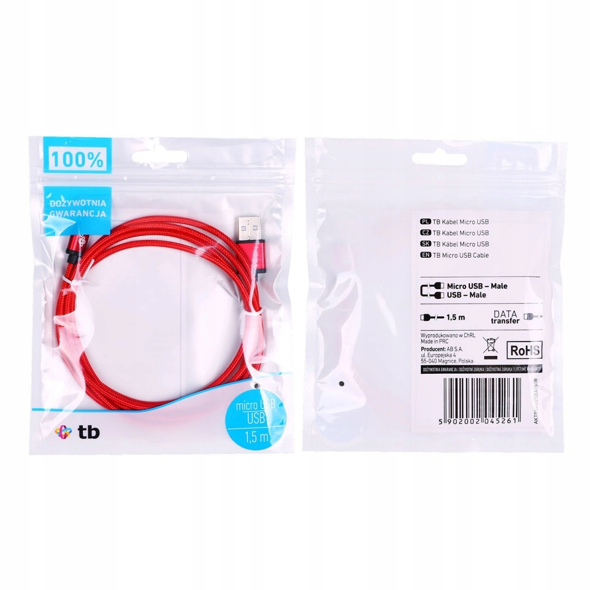 Kabel marki TB do urządzeń wyposażonych w złącze micro USB.
