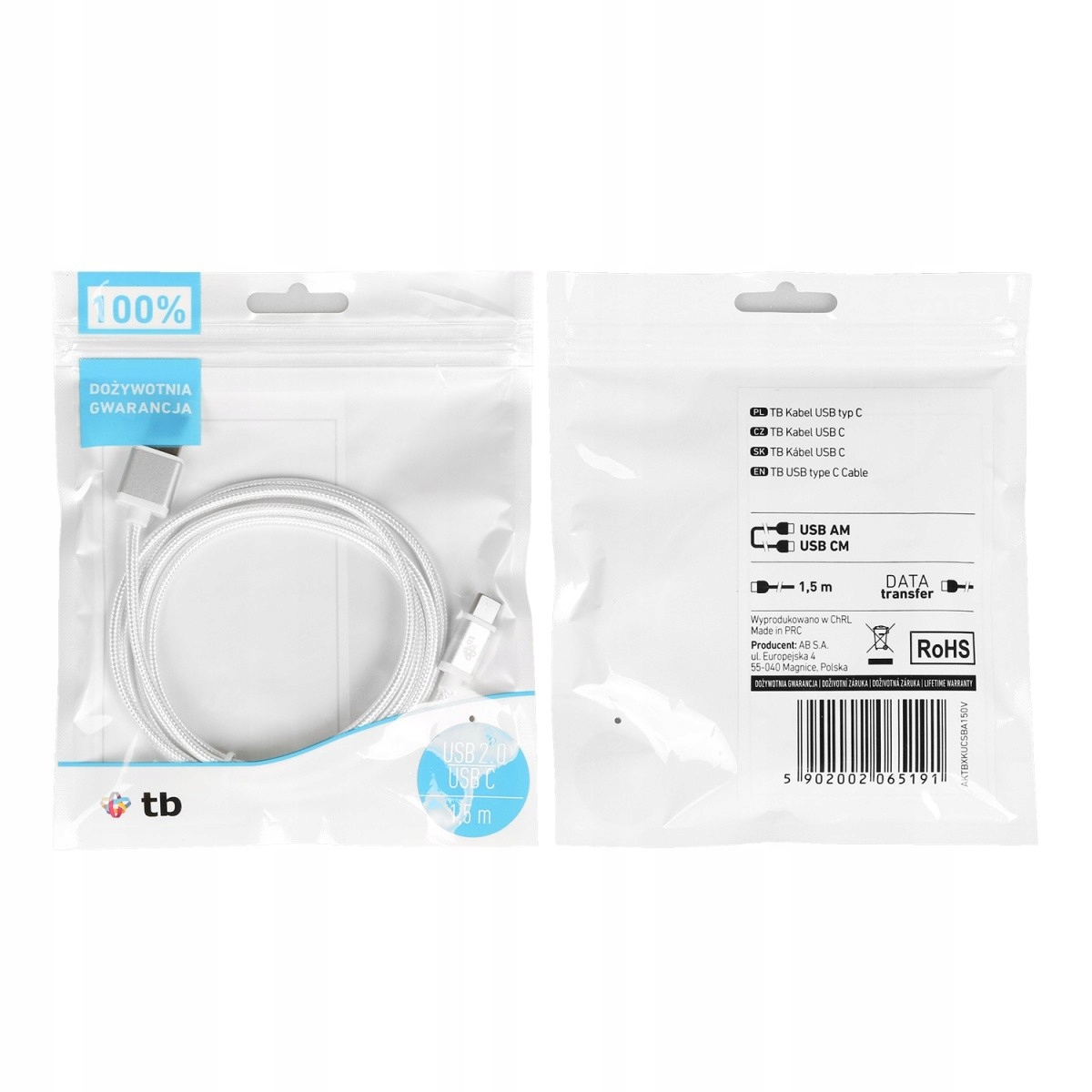TB Kabel USB-USB C 1.5m srebrny sznurek