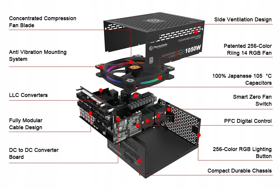 Toughpower Grand Riing 1050W Platinum 230V, 8xPEG, 14 cm