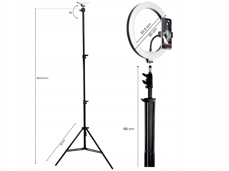 Lampa pierścieniowa RING 30 cm ze statywem 210 cm