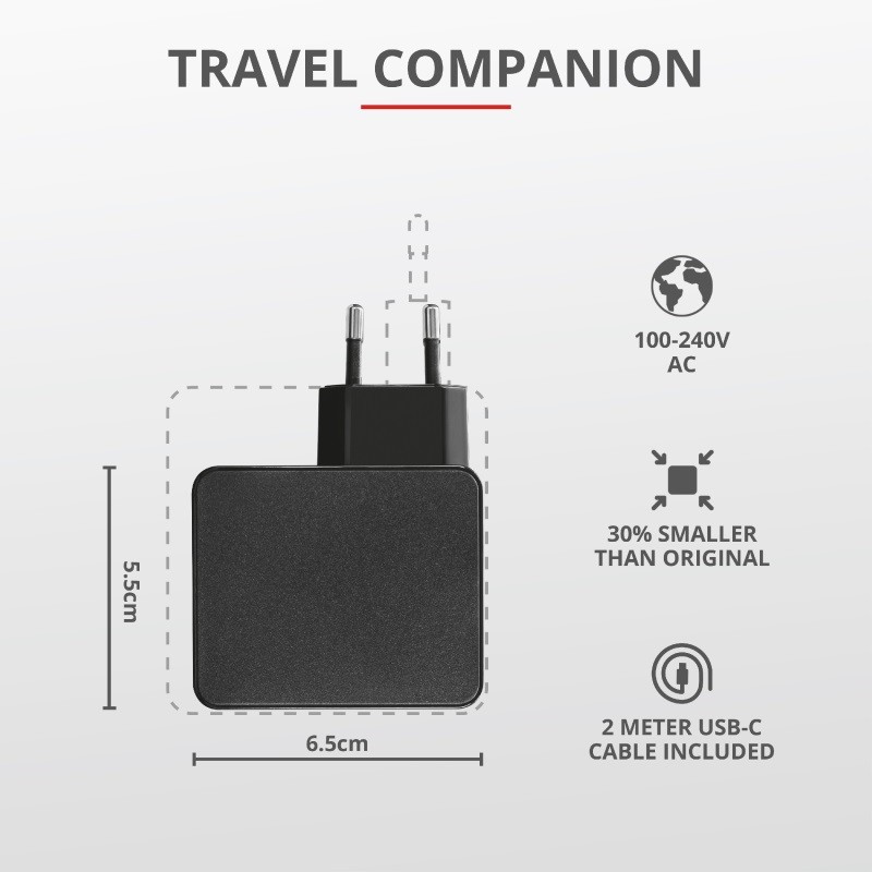 Łatwa w użyciu i niezawodna ładowarka do laptopa Trust Maxo 61W ułatwia ładowanie w parku. Dzięki 2-metrowemu kablowi USB-C zapewnia bezproblemową kompatybilność z Apple MacBook. Naładuj laptopa - lub dowolne inne urządzenie USB-C - szybko i stabilnie, aby szybko odzyskać pełną moc.