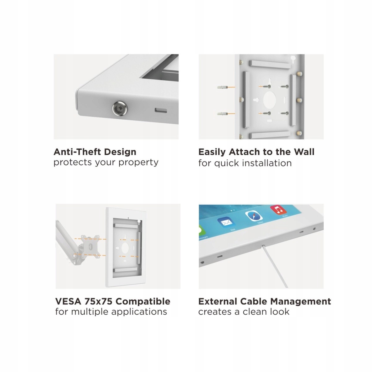 Dzięki zamykanej obudowie i wysokiej jakości konstrukcji stalowej jest to bezpieczny, stylowy i niedrogi wybór do używania tabletów do przekazywania informacji lub reklam w miejscach publicznych. Użytkownicy mogą postawić go na blacie lub zamontować na ścianie w celu tymczasowego lub stałego montażu.