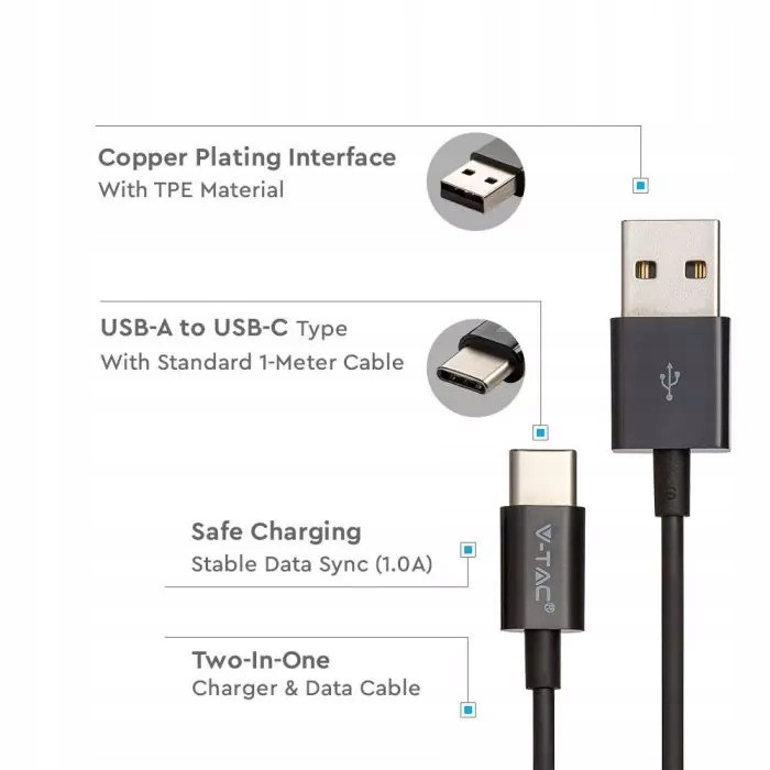 V-TAC Kabel USB M - USB Typ-C 1m 1.0A Czarny