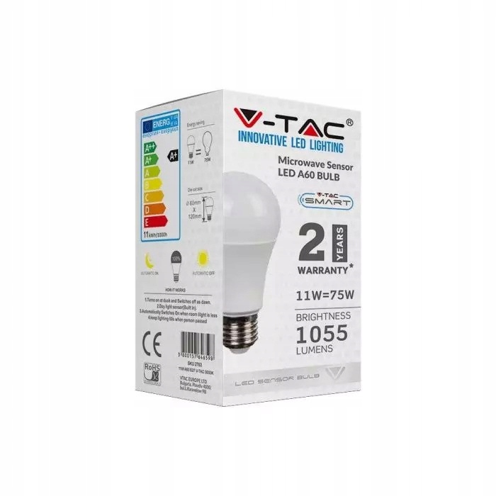 - Żarówka A60 zaprojektowana z wbudowanym czujnikiem mikrofalowym