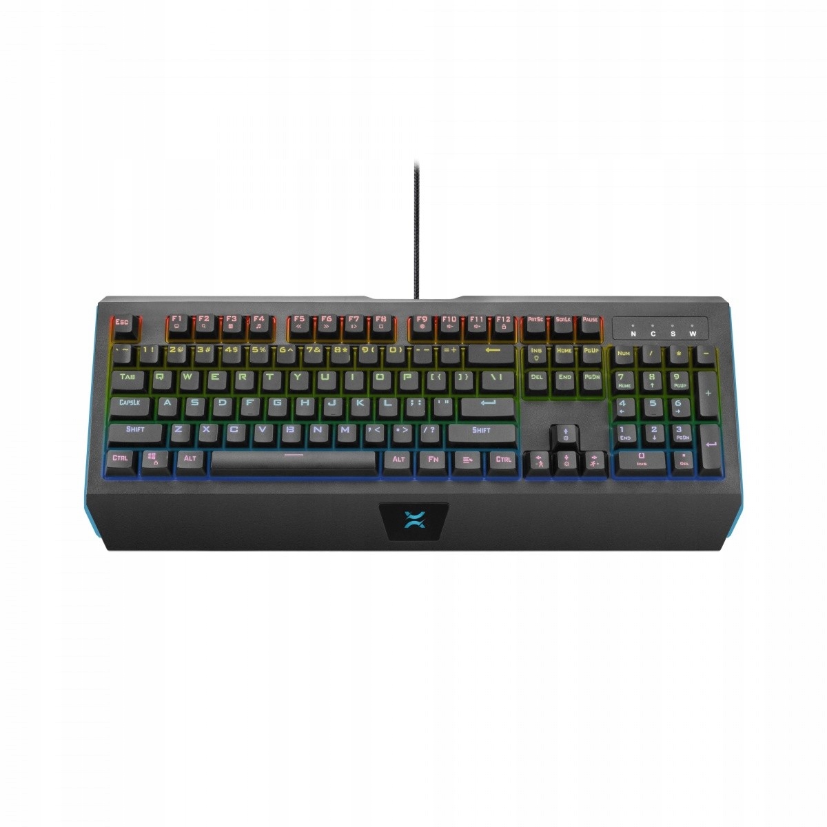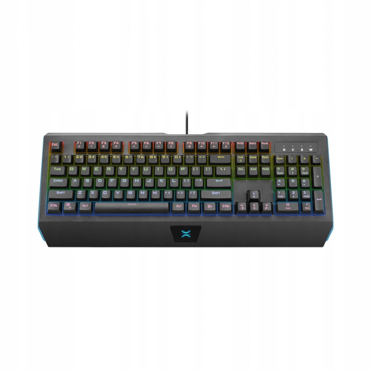 Pełnowymiarowa, mechaniczna klawiatura dla graczy z tęczowym podświetleniem Rainbow oraz antyghostingiem na wszystkich klawiszach.