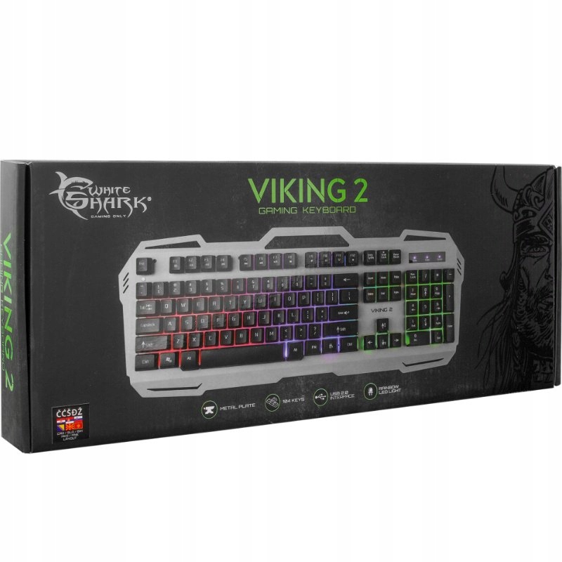 Klawiatura gamingowa WhiteShark VIKING-2 została wykonana z wysokiej jakości metalu, który jest cechą charakterystyczną produktu. Surowe wykończenie w połączeniu z efektownym podświetleniem LED-Rainbow sprawia, że klawiatura wyróżnia się na tle pozostałych sprzętów gamingowych. Górna część urządzenia została wyposażona w uchwyt na telefon, dzięki czemu powiadomienia są zawsze w zasięgu wzroku.