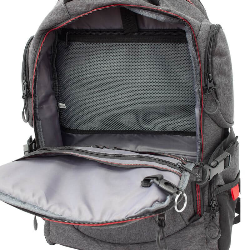 Plecak gamingowy WhiteShark NIGHT RIDER został stworzony z myślą o 16-calowych laptopach. W głównej komorze zmieści się notebook o maksymalnej przekątnej 16”. Plecak posiada aż 7 różnego rodzaju przegród i zewnętrznych schowków oraz 2 boczne kieszenie z siatki na butelkę. Dzięki temu w plecaku WhiteShark zmieszczą się najpotrzebniejsze akcesoria komputerowe oraz wiele innych niezbędnych drobiazgów.
