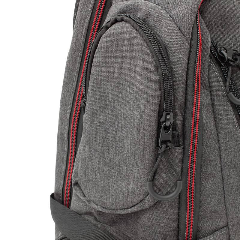 Pleca NIGHT RIDER został wykonany z wodoodpornego materiału poliestrowego Wulong w szarym kolorze z czerwonymi detalami, które podkreślają gamingowy styl plecaka. Casualowy, niezobowiązujący design sprawia, że plecak WhiteShark NIGHT RIDER dobrze sprawdzi się w codziennym użytkowaniu. Wygodę noszenia zapewniają wypełnione pianką elementy na plecach, wyściełane szelki z oddychającą siatką oraz dodatkowy pasek na klatce piersiowej. Solidne wykończenie gwarantuje bezpieczeństwo przenoszenia cennego notebooka i akcesoriów komputerowych.