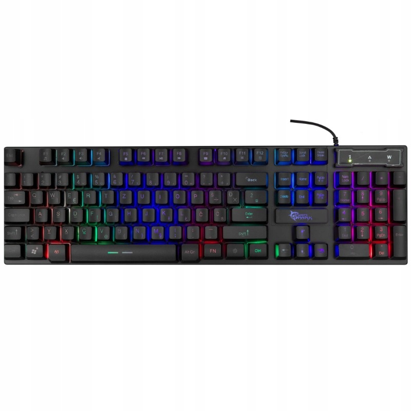 W zestawie znajduje się pełnowymiarowa klawiatura dla graczy wyposażona w 12 funkcji multimedialnych (FN + F1 do F12) oraz funkcję anti-ghosting przypisaną do 19 klawiszy. W klawiaturze wykorzystano przełączniki membranowe do gier o żywotności 5 mln naciśnięć. Ergonomiczna konstrukcja z podpórką na nadgarstki zapewnia komfort podczas gry lub pracy. Klawiatura posiada tęczowe podświetlenie LED z podświetlanymi literami i regulowaną jasnością. Aby jej używać, nie jest wymagane żadne dodatkowe oprogramowanie. Wystarczy podłączyć i grać. Klawiatura została wyposażona w kabel w oplocie o długości 1,5 metra dla łatwego podpięcia i korzystania.